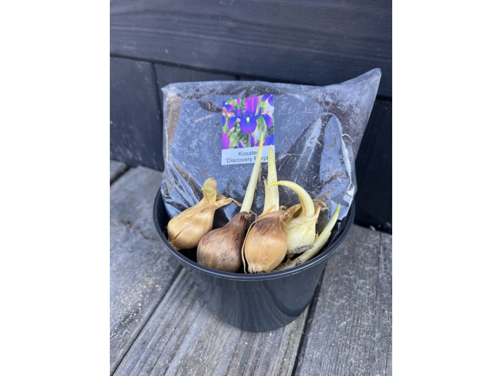 Pěstební sada obsahující květináč, substrát a 5 cibulí holandského kosatce s výrazně fialovými květy. Elegantní doplněk jarních výsadeb s vyšším vzrůstem.